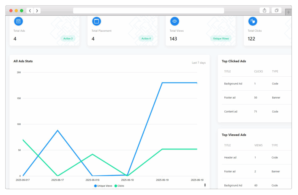 Manage ads with a smart 3-layer system — ads, groups, and placements — and auto-inject them exactly where you want.