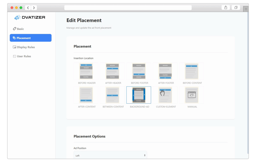 Place ads automatically in over 10 preset spots, or manually pick a custom location.
